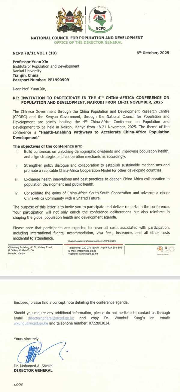 肯尼亚国家人口与发展委员会(NCPD)是隶属于肯尼亚政府的官方机构,中国人口与发展研究中心(CPDRC)是隶属于国家卫生健康委员会的事业单位,两个单位合作举办第四届中国—非洲人口与发展大会,开展中国与非洲国家的人口与发展的多边和双边交流,这个系列会议分别在肯尼亚内罗毕、中国广州、加纳多哥举办过三届。