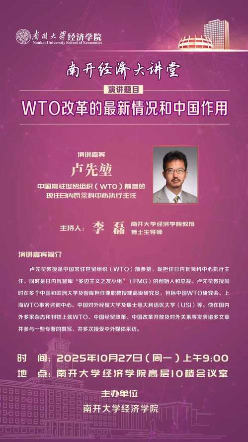 卢先堃教授是中国常驻世贸组织(WTO)前参赞,现担任日内瓦箂科中心执行主任,同时是日内瓦智库“多边主义之友小组”(FMG)的创始人和总裁。卢先堃教授同时在多个中国和欧洲大学及智库担任兼职教授或高级研究员,包括中国WTO研究会、上海WTO事务咨询中心、中国对外经贸大学及瑞士意大利语区大学(USI)等。他在国内外多家杂志和刊物上就WTO、中国经贸政策、中国改革开放及对外关系等发表诸多文章并参与一些专著的撰写,并多次接受中外媒体采访。