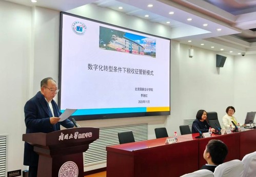 2025年11月3日下午,一场聚焦数字经济与税收治理前沿议题的专题学术交流在南开大学经济学院一楼会议报告厅成功举办。本次学术活动以“数字化转型条件下税收征管新模式”为主题,由财政学系主任倪志良教授特邀我国知名财税专家、北京国家会计学院副院长李旭红教授担任主讲人。财政学系财金所教工支部书记、税务硕士项目主任李冬妍副教授主持本次活动。北京国家会计学院教师段小龙、财政学系教师刘俸奇等师生代表共计60余人共同参与交流研讨。