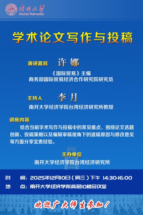 主办单位:南开大学经济学院台湾经济研究所