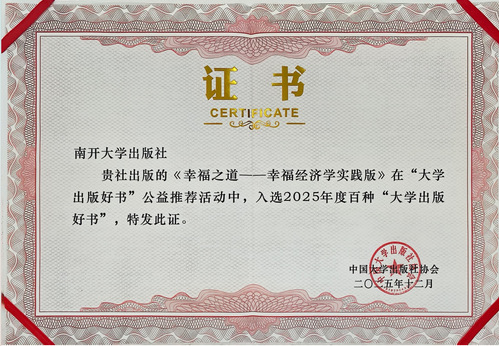 由南开大学出版社推出的《幸福之道——幸福经济学实践版》(倪志良、赵春玲 著)一书成功入选,成为大众图书类读物中的亮点之作。本书的出版与获奖,正呼应了当今社会对美好生活日益强烈的向往与追求,不仅为普通读者提供了一本可操作、可践行的幸福生活指引,也为公共政策制定者、教育工作者及企业管理者提供了有益的参考维度,启发社会各界共同思考如何在经济发展中注入更多“幸福”内涵,促进社会整体福祉的提升。