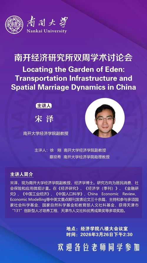 3月26日下午2:30,南开经济研究所双周学术讨论会将举行。