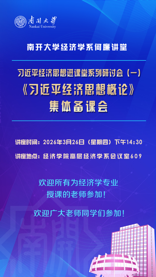讲座预告 | 南开大学经济学系何廉讲堂:习近平经济思想进课堂系列研讨会(一)-《习近平经济思想概论》集体备课会
