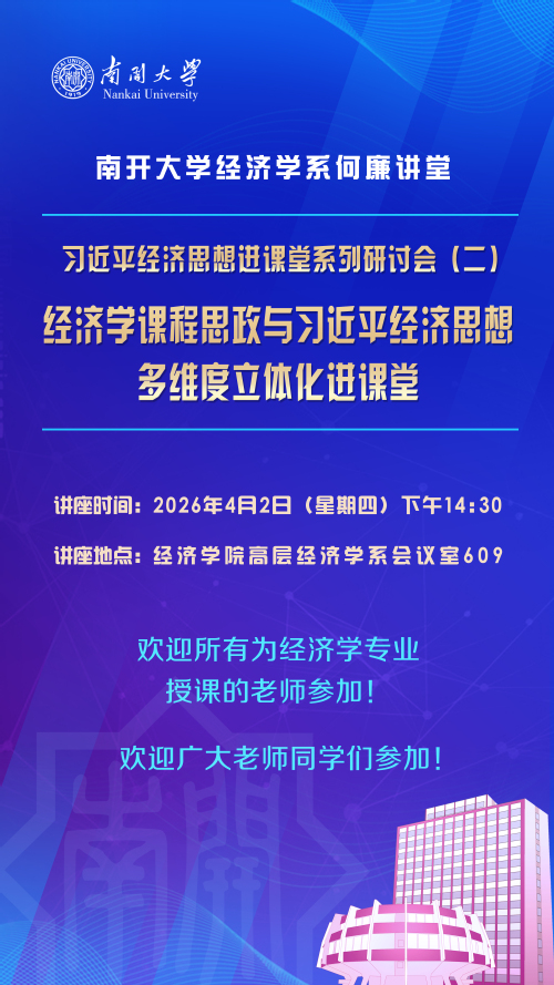讲座预告 | 南开大学经济学系何廉讲堂:习近平经济思想进课堂系列研讨会(二)- 经济学课程思政与习近平经济思想多维度立体化进课堂