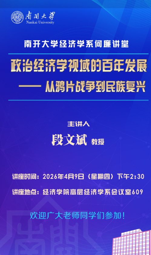 讲座预告 | 南开大学经济学系何廉讲堂:政治经济学视域的百年发展——从鸦片战争到民族复兴