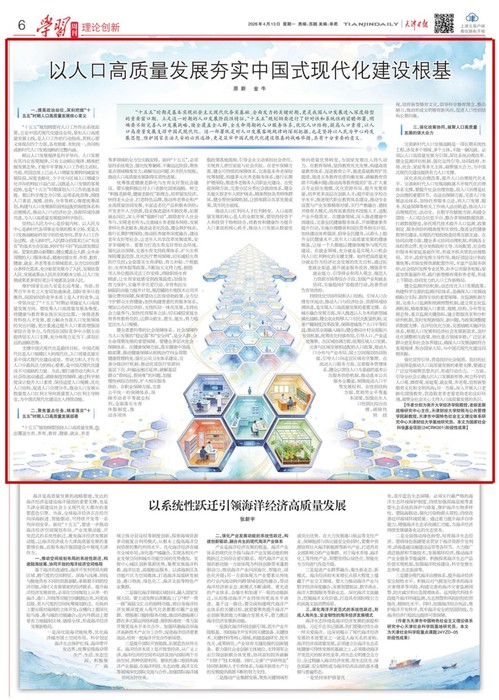 2026年4月13日,《天津日报》理论版头条刊发我院人口与发展研究所原新教授和天津财经大学金牛副教授合作的理论文章《以人口高质量发展夯实中国式现代化建设根基》,津云平台同步发布。文章内容如下: