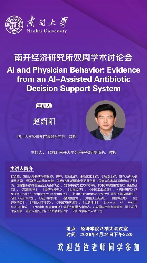 本期讲座题目为:AI and Physician Behavior—Evidence from an AI-Assisted Antibiotic Decision Support System