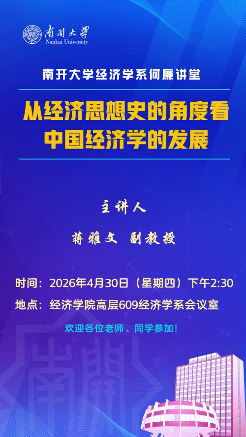 讲座预告 | 南开大学经济学系何廉讲堂:从经济思想史的角度看中国经济学的发展