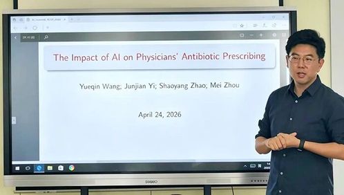 赵绍阳教授首先指出,伴随人工智能技术的快速发展,AI应用已覆盖众多领域,并在多种任务中实现了生产效率提升。然而,对于高风险场景、高度专业化领域,如医生临床决策,人工智能在大规模真实场景中的应用效果尚未得到充分验证。另一方面,抗生素耐药性是全球公共卫生领域面临的严峻挑战,临床感染性疾病的诊疗多依赖经验性用药,不合理用药问题突出,传统抗生素管理系统效率较低。对此,本研究聚焦“AI辅助抗生素决策支持系统(ADSS)”,探究其对门诊医生处方行为和医疗效果的影响及其机制,填补了相关领域的研究空白。