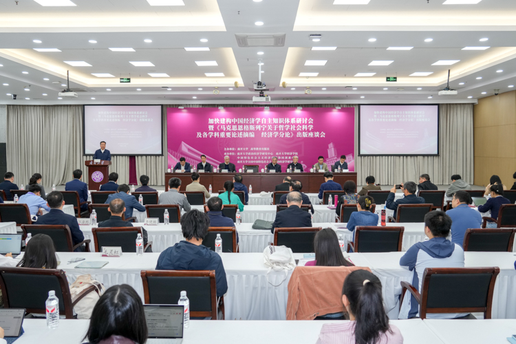 4月26日,“加快建构中国经济学自主知识体系研讨会暨《马克思恩格斯列宁关于哲学社会科学及各学科重要论述摘编 经济学分论》出版座谈会”在八里台校区省身楼召开。会议旨在深入学习贯彻习近平总书记在哲学社会科学工作座谈会上的重要讲话精神,深入学习马克思主义经济学经典著作,凝聚学术共识、深化理论研究,进一步推动加快中国经济学自主知识体系建构。