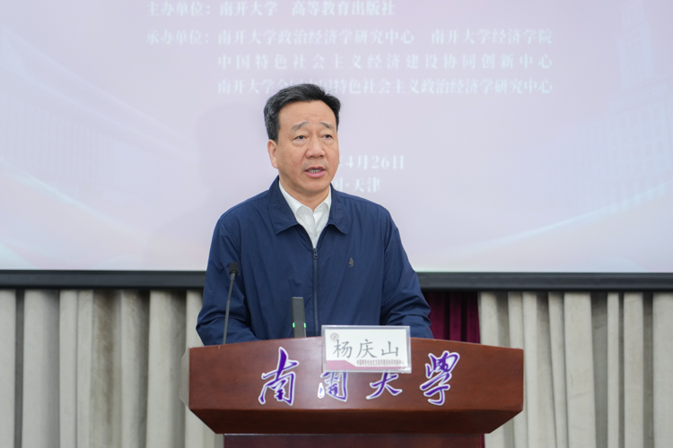 开幕式上,杨庆山在致辞中指出,原创性教材建设是体现中国特色哲学社会科学、建构自主知识体系的重要载体,此次由南开大学编书组编写的原创性“经典系列”教材《经济学分论》在国内率先出版,是继马克思主义理论研究和建设工程“中国系列”原创性教材《中国特色社会主义政治经济学》之后的又一重大成果,标志着在建构中国经济学自主知识体系方面又迈出重要一步。南开大学历来重视教材建设,特别是原创性教材建设,在教育部首批新时代高校哲学社会科学原创性教材“培育项目”遴选工作中,表现突出、成果丰硕,立项数量位居全国高校前列。党的十八大以来,学校深入贯彻习近平总书记关于繁荣发展哲学社会科学的重要讲话精神,全面推进南开品格、中国特色哲学社会科学学科体系、学术体系、话语体系建设。希望与会专家学者以此次研讨会为契机,分享真知灼见、碰撞思想火花,推动中国原创性教材建设再上新台阶,为强国建设和民族复兴伟业作出新的更大贡献。