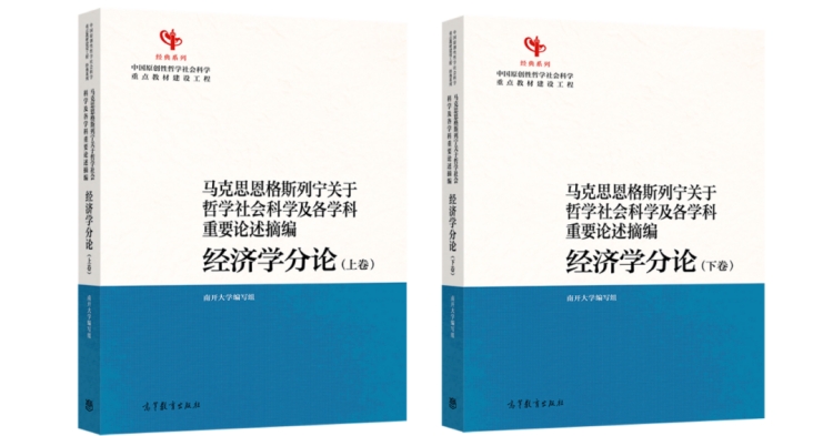 今年是习近平总书记主持召开哲学社会科学工作座谈会并发表重要讲话十周年,是习近平总书记提出“加快构建中国特色哲学社会科学,归根结底是建构中国自主的知识体系”重要论断四周年,是习近平总书记视察南开大学七周年。以南开大学讲席教授逄锦聚任主编的南开大学编书组编写的《马克思恩格斯列宁关于哲学社会科学及各学科重要论述摘编 经济学分论》(上、下卷)(以下简称《经济学分论》)作为中国原创性教材“经典系列”的首批成果,于2026年2月由高等教育出版社出版发行。